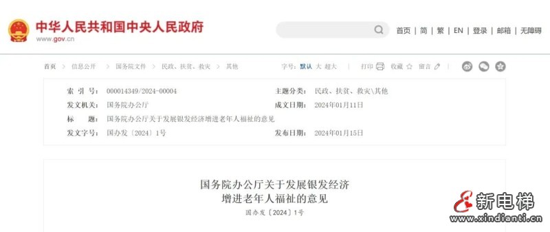 1月15日,中国政府网发布《国务院办公厅关于发展银发经济增进老年人福祉的意见》,第二十条提到“推进适老化改造”。