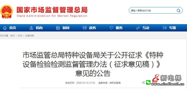 总局发布:公开征求《特种设备检验检测监督管理办法(征求意见稿)》
